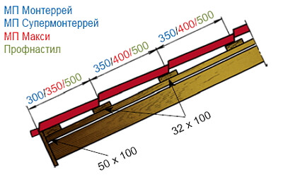 Металлочерепицу начинают монтировать с нижнего угла прямоугольного ската, со стороны, противоположной капиллярной канавке. Канавка устраняет капиллярный эффект, когда вода поднимается по капилляру, образованному двумя плотно прижатыми листами металлочерепицы.