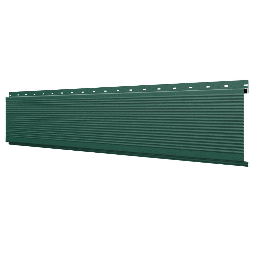 Линеарная потолочно-стеновая панель РИФЛЕНАЯ усиленная цвет RAL6005 Зеленый Мох Стальной Бархат применяется в качестве софитов для подшивы крыши, наружной и внутренней отделки потолков, стен, фронтонов фасада дома в Тамбове.