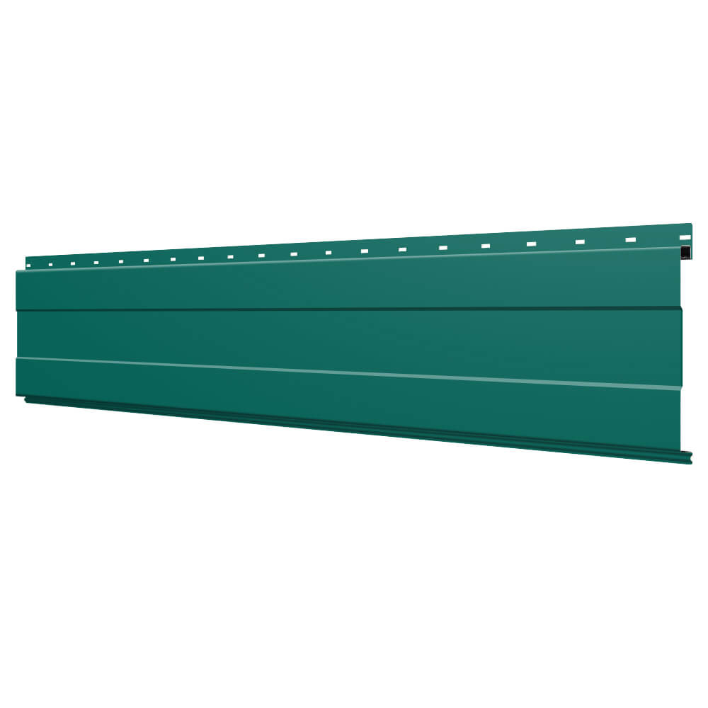Линеарная потолочно-стеновая панель с ПОЛОСОЙ усиленная цвет RAL6026 Опал применяется в качестве софитов для подшивы крыши, наружной и внутренней отделки потолков, стен, фронтонов фасада дома в Тамбове.